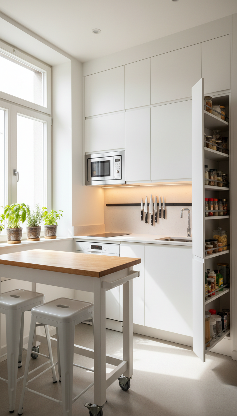 Maximizing every inch is key in a compact apartment kitchen. This style focuses on ingenious storage solutions like pull-out pantries, vertical shelving, and magnetic knife strips to keep countertops clear and functional. Multi-purpose furniture, such as a rolling butcher block island that doubles as prep space and dining, adds incredible versatility. It’s about making every corner count, ensuring efficiency without feeling cluttered, and creating a highly practical environment.