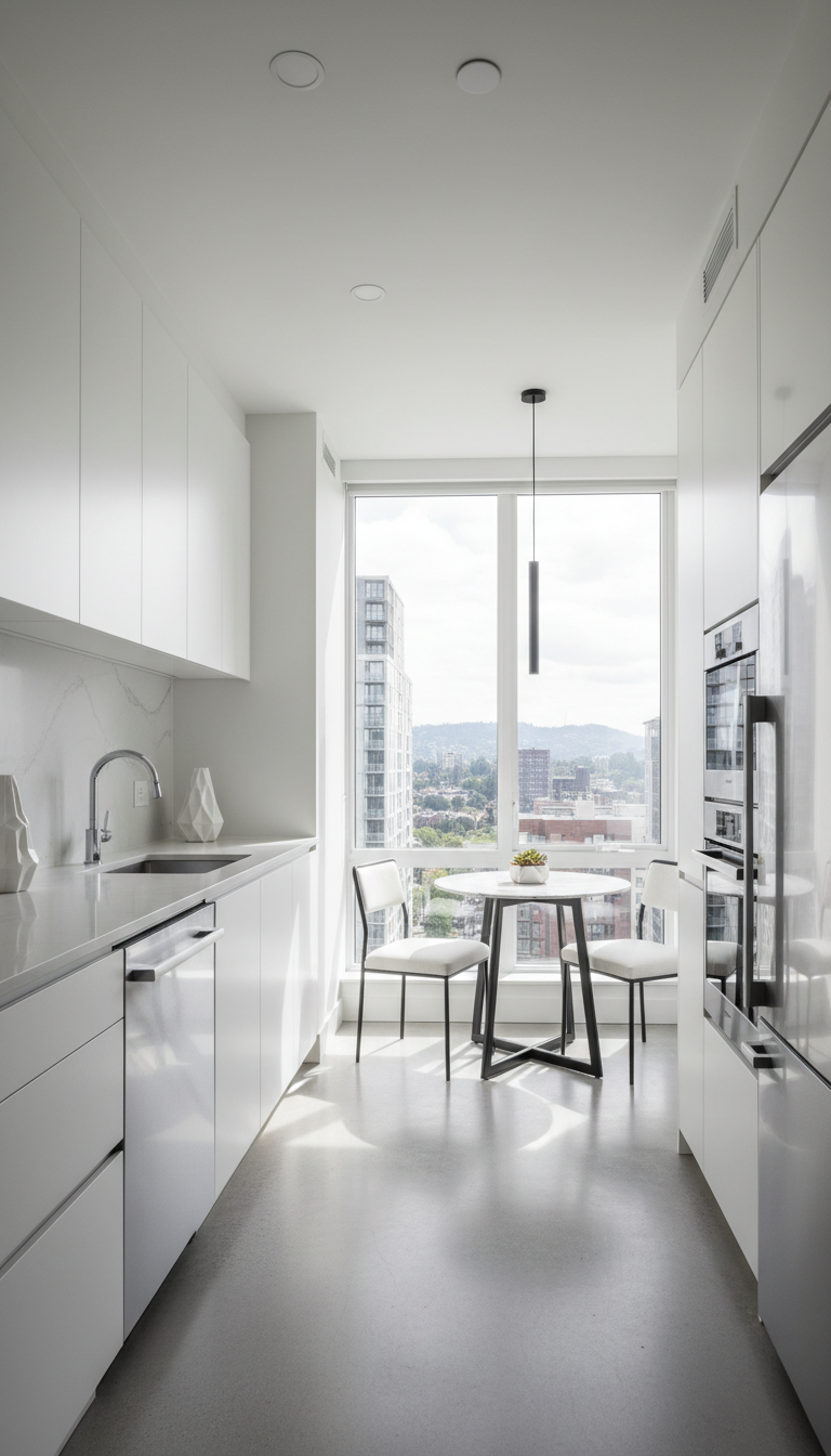 Embrace the beauty of simplicity with the Minimalist Modern aesthetic. This style champions clean lines, uncluttered surfaces, and a muted color palette dominated by whites, greys, and blacks. It focuses on integrated appliances and functional design to create a serene and spacious feel, making even the smallest apartment kitchen appear larger and more open. The emphasis is on elegant functionality and a visually quiet environment.
