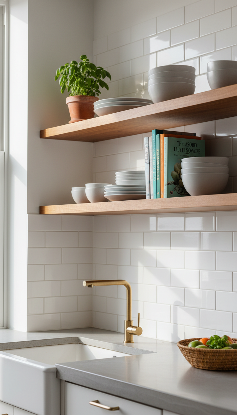 Swapping upper cabinets for open shelving instantly makes a small kitchen feel larger and more inviting. This allows you to display beautiful dishware, cookbooks, and small plants, adding both personality and practicality. Carefully curated items prevent clutter while keeping frequently used tools within easy reach, streamlining your cooking process. Opt for sturdy shelves in materials that complement your existing decor, such as natural wood or sleek metal, to create a cohesive look. It’s a fantastic way to introduce visual interest and break up monotonous wall space.