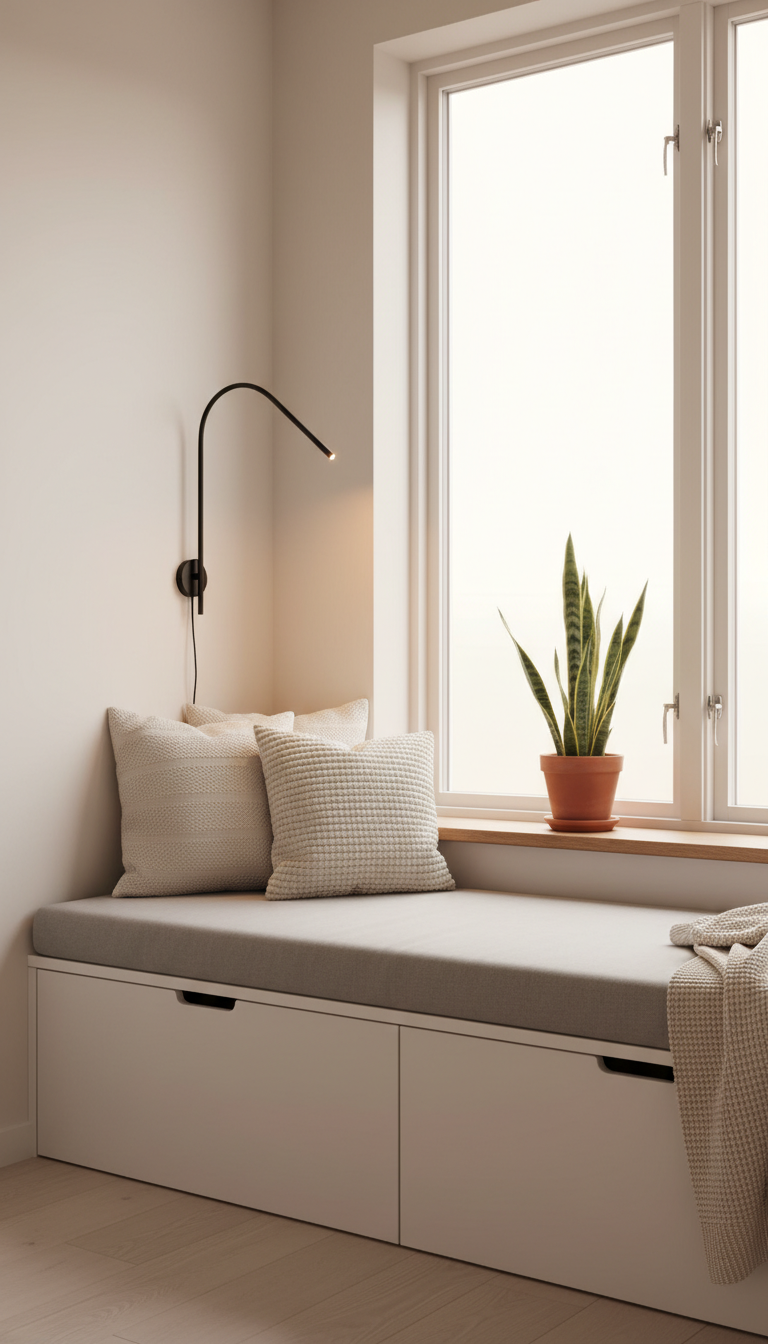 Transform an existing window sill or a small recessed area beneath a window into a blissful reading spot. A custom-built bench with integrated storage can maximize functionality in a compact space, providing a comfortable seating surface while also offering a place to stash books or blankets. Adorn it with plush cushions, soft throw pillows, and a cozy blanket to create an inviting atmosphere. Natural light streaming through the window enhances the reading experience, making this a bright and airy retreat for any time of day.