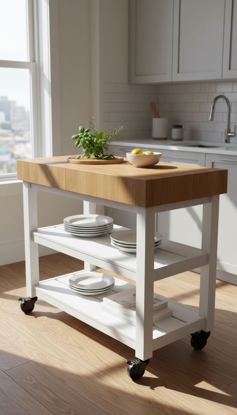 Compact Rolling Island with Storage