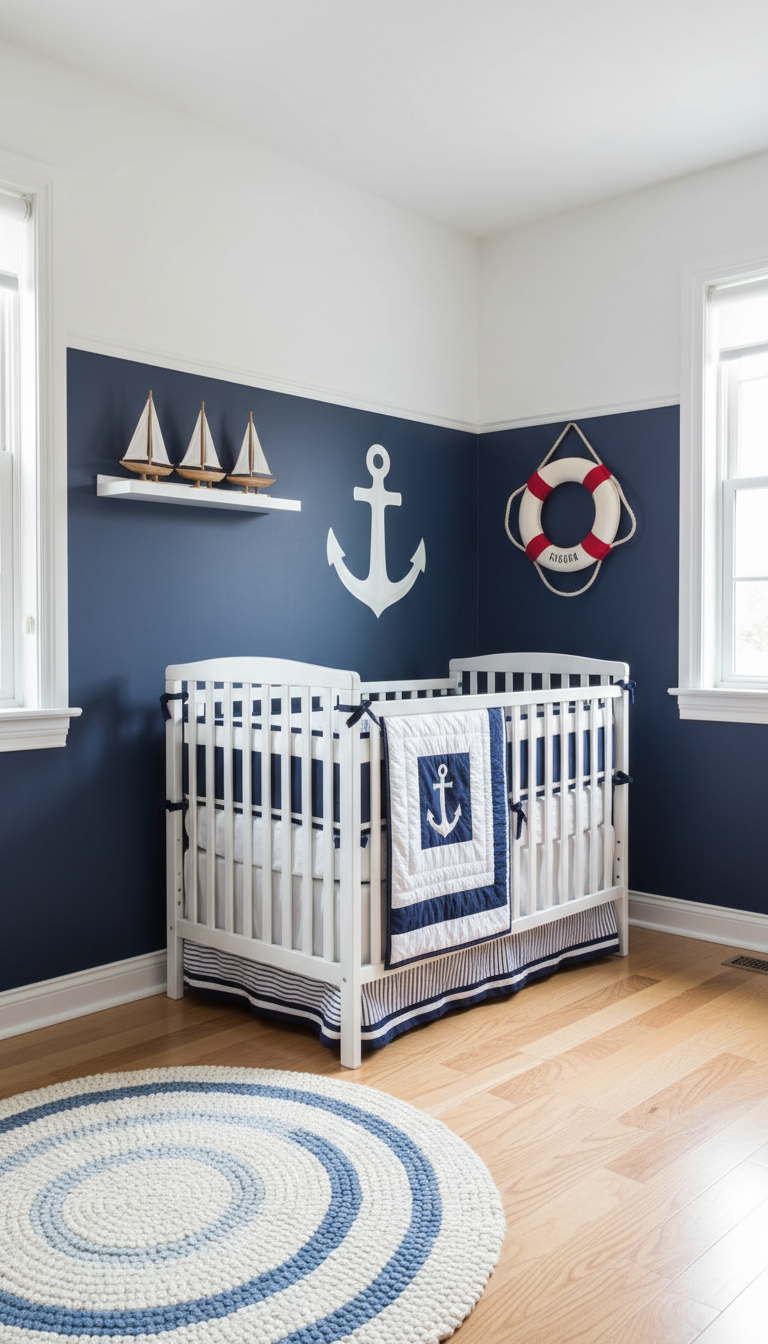 Evoke the timeless appeal of the sea with a nautical-themed nursery. Think crisp navy blue, pristine white, and pops of red or yellow for accents. Incorporate elements like sailboats, anchors, ropes, and stripes through bedding, wall art, and decorative items. This classic look is both sophisticated and playful, offering a serene yet adventurous atmosphere perfect for a little explorer. It’s a theme that never goes out of style and can easily evolve as your child grows.
