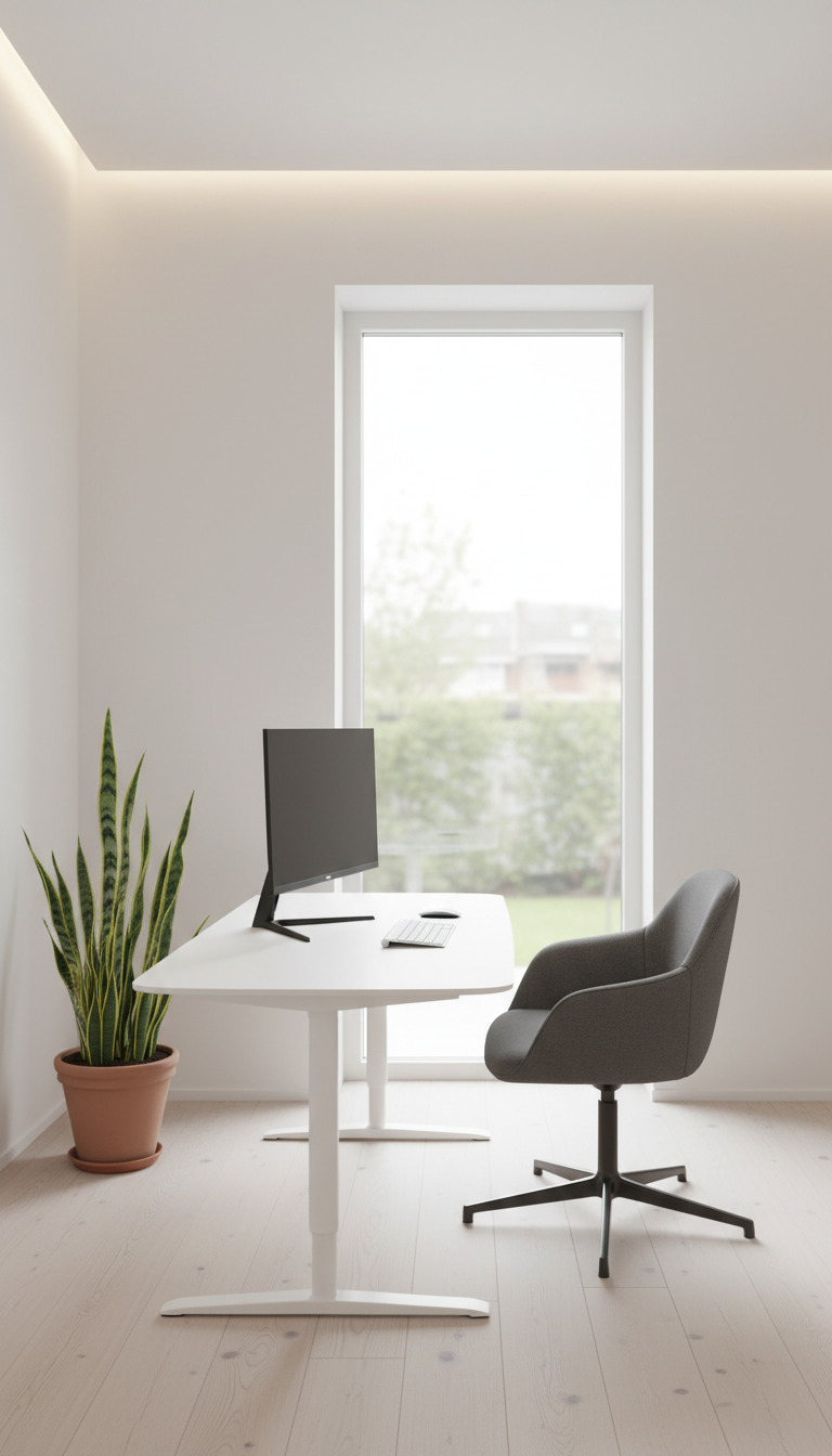 Create a peaceful and highly functional workspace with Scandinavian design principles. This style emphasizes simplicity, functionality, and a connection to nature, utilizing light wood tones, clean lines, and a predominantly white or light gray color scheme. Hygge, the Danish concept of coziness, is integrated through soft textiles, warm lighting, and a few thoughtfully chosen decorative items. The goal is to create a bright, airy, and uncluttered space that promotes well-being and productivity. Natural light is paramount, often complemented by minimalist task lighting.