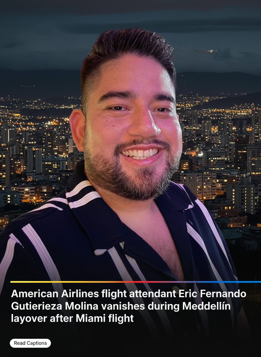 Authorities in both the United States and Colombia have launched an urgent search following the mysterious disappearance of a Dallas-based American Airlines flight attendant during a routine international layover. Eric Fernando Gutierrez Molina, 32, has not been seen or heard from since arriving in the city of Medellín late Saturday night.