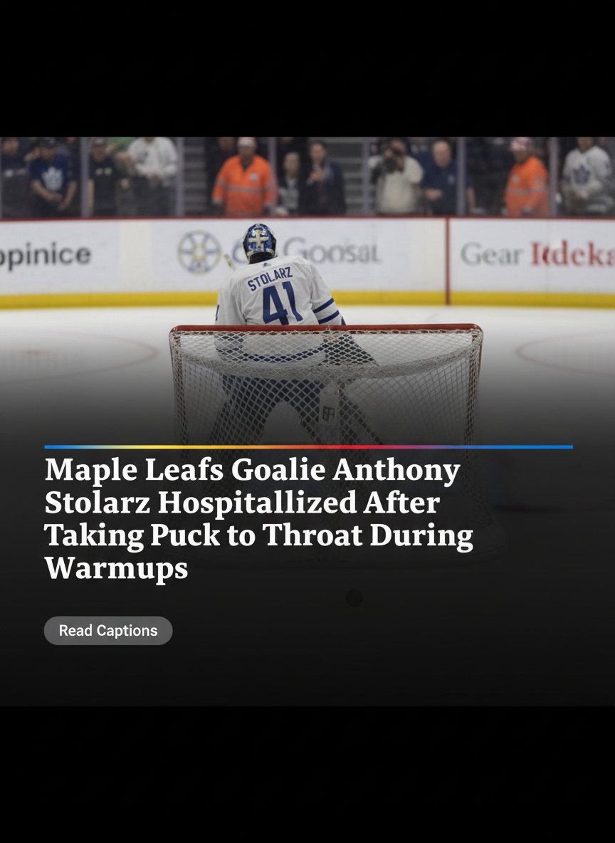 TORONTO — A routine pre-game warmup turned into a harrowing medical emergency on Sunday evening as Toronto Maple Leafs goaltender Anthony Stolarz was struck in the throat by a puck, forcing his immediate removal from the ice and a subsequent trip to a local hospital.