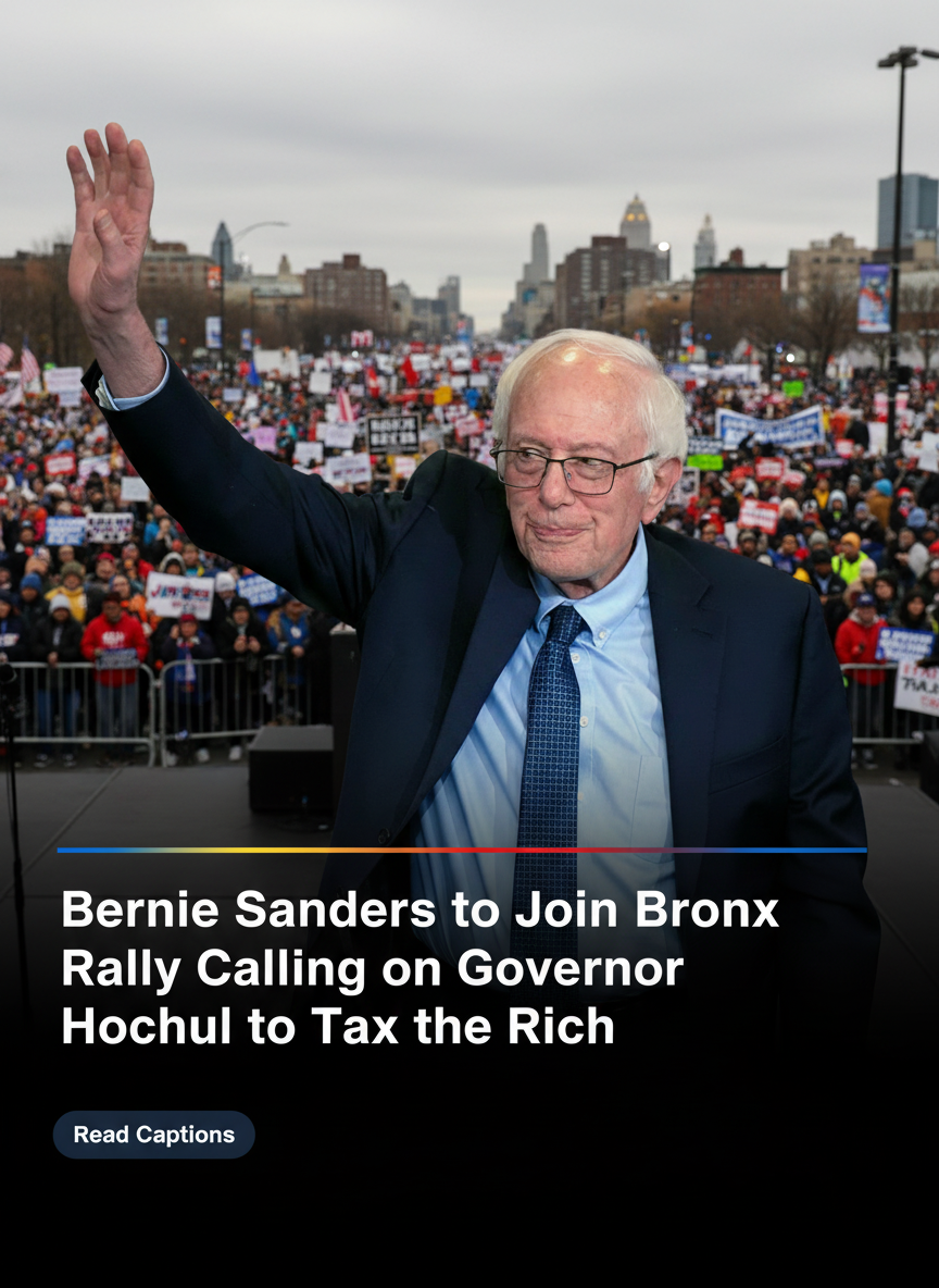 Bernie Sanders to Join NYC ‘Tax the Rich’ Rally, Escalating Pressure on Gov. Hochul