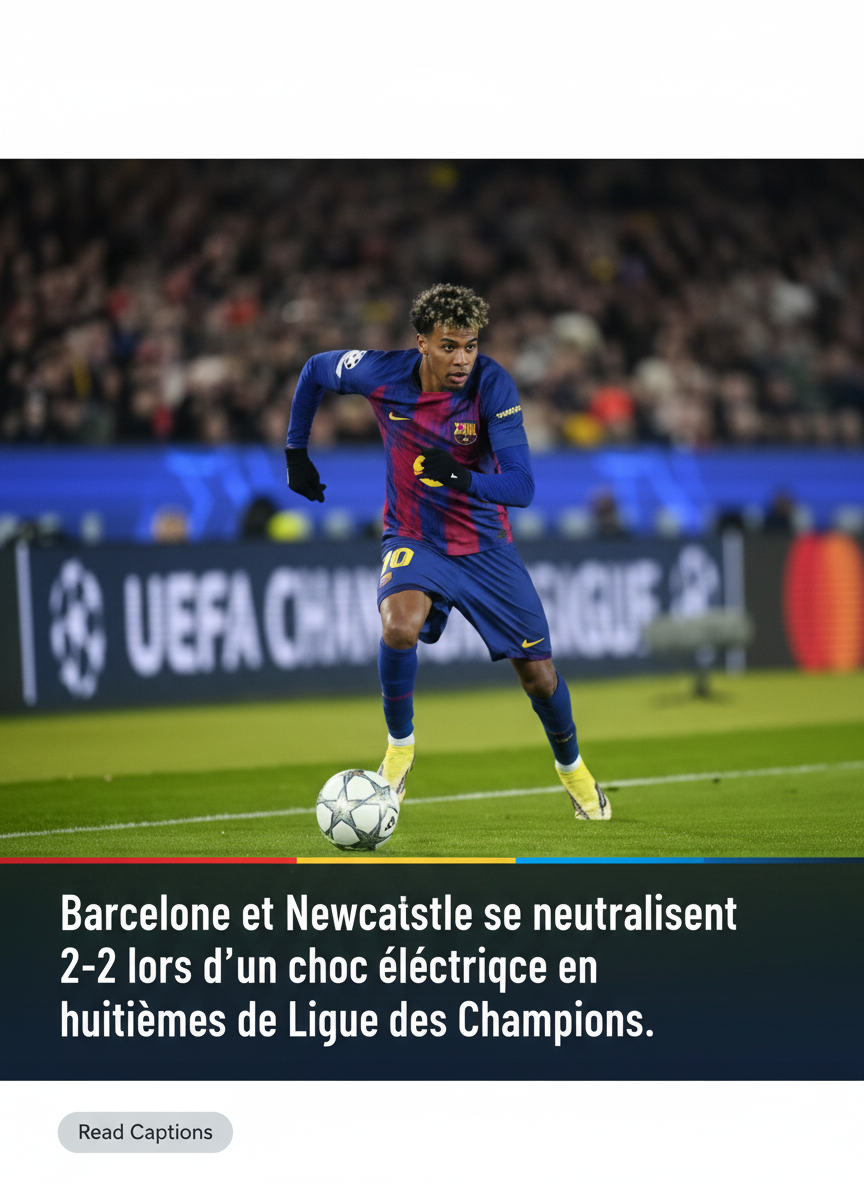 BARCELONA — In a night of high-octane European drama, FC Barcelona and Newcastle United played out a pulsating 2-2 draw in the first leg of their UEFA Champions League Round of 16 tie. The result leaves the contest on a knife-edge as both sides prepare for a decisive second leg on Tyneside.