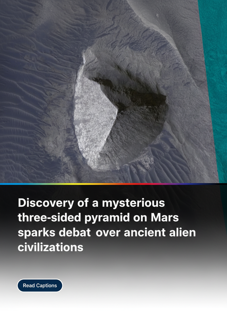 MARS — In a discovery that has sent shockwaves through the scientific community and ignited a firestorm of internet theories, high-resolution imagery from the latest Mars reconnaissance mission has revealed a startlingly geometric structure: a massive, three-sided pyramid rising from the dusty plains of the Red Planet.