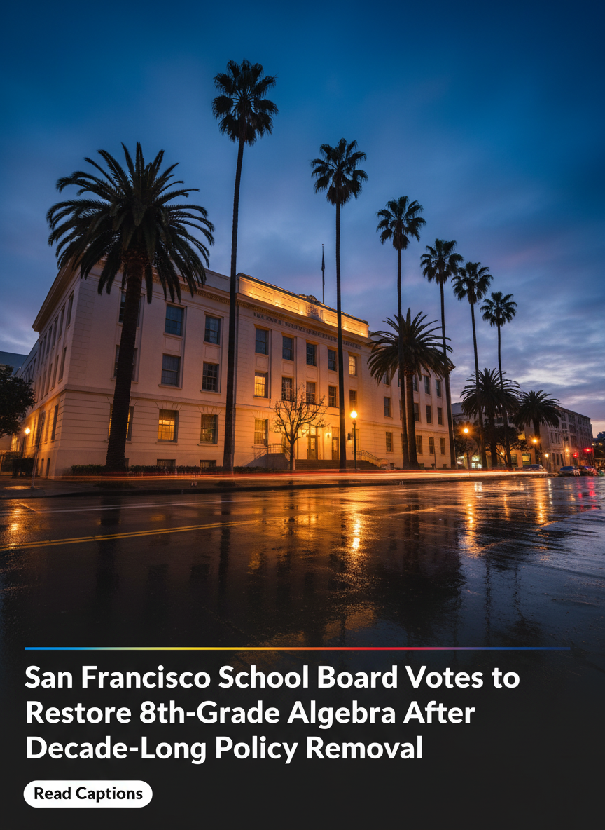 SAN FRANCISCO — In a move that marks the definitive end of a controversial decade-long experiment, the San Francisco Board of Education voted late Tuesday night to officially restore Algebra 1 as an elective option for all eighth-grade students across the district. The decision, approved in a unanimous vote, sets the stage for a full system-wide rollout beginning in the 2026-2027 academic year.