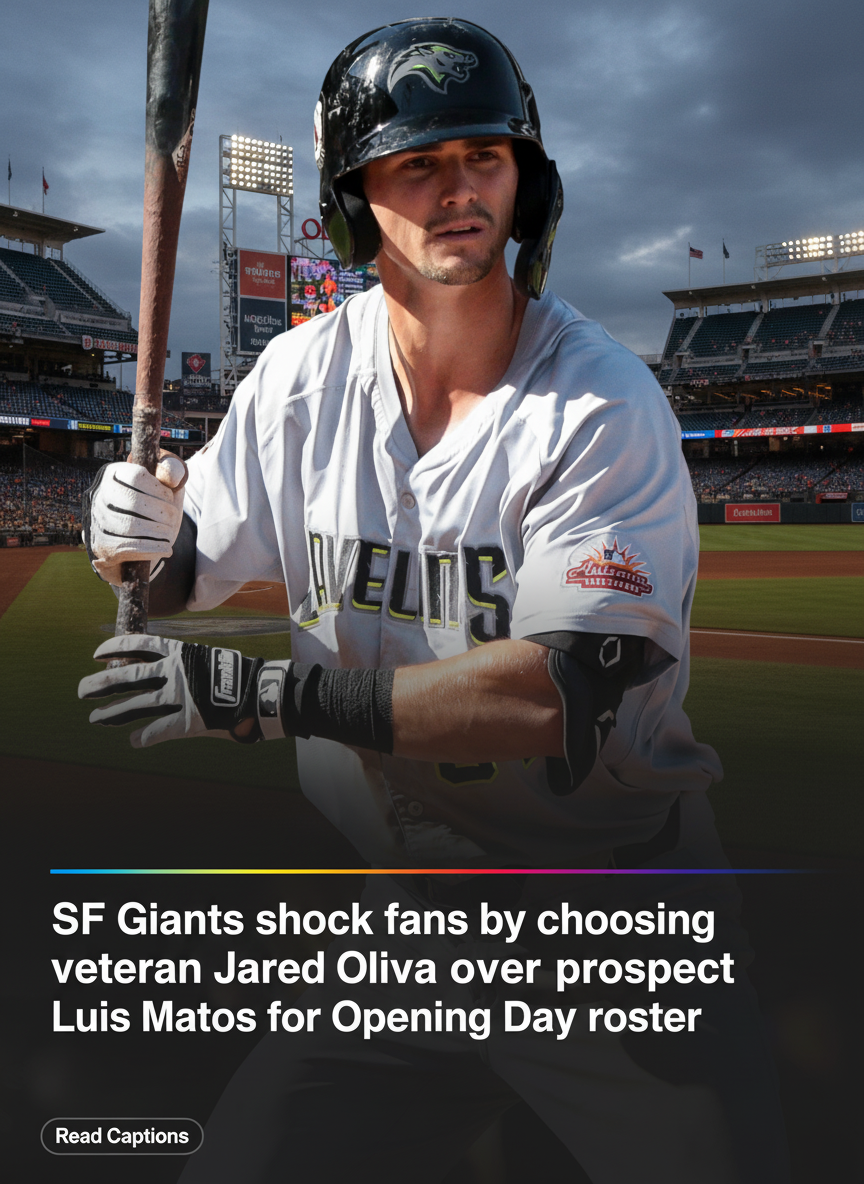 SAN FRANCISCO — In a move that has sent shockwaves through the Bay Area, the San Francisco Giants finalized their 26-man Opening Day roster on Wednesday with a decision that prioritizes immediate veteran reliability over youthful potential. The club announced that 30-year-old outfielder Jared Oliva has earned a spot on the big-league roster, while former top prospect Luis Matos has been designated for assignment.